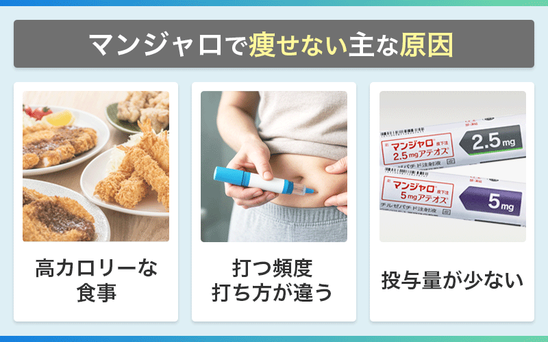 マンジャロで痩せない理由には、摂取カロリーが多いことや、正しい使い方ができていないことがあげられます。