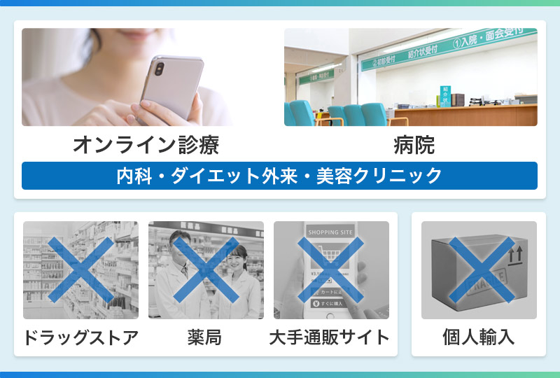 マンジャロは、オンライン診療や内科・ダイエット外来がある病院、美容クリニックで入手できます。